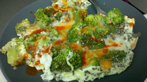 Chia Seeds, Broccoli, Cheese, Egg Whites, and a Splash of Tapatio