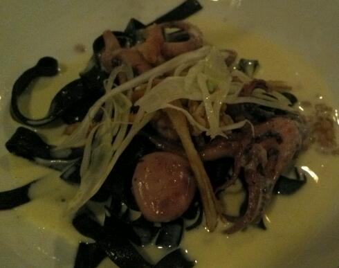 Octopus with fennel and squid ink fettuccini